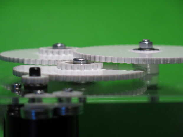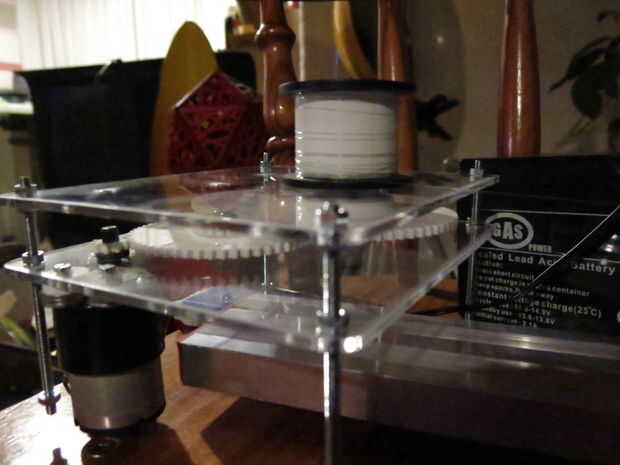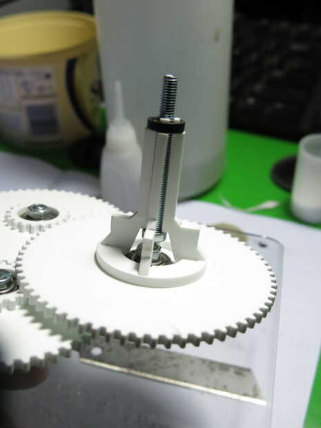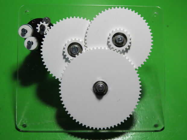 Se puede ver que la planificación cuidadosa en CorelDraw traducido efectivamente en la unidad de caja de engranajes montada. El resultado final es muy frágil, incómodo y difícil de utilizar.