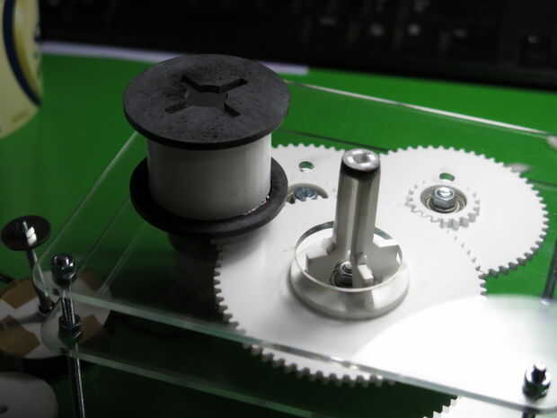 Usé el mismo hardware básico Mark I, sin embargo quería más del engranaje abajo el movimiento. No estoy seguro exactamente el cociente del engranaje (pero sé que esto puede ser calculado).