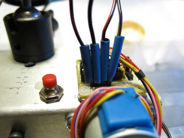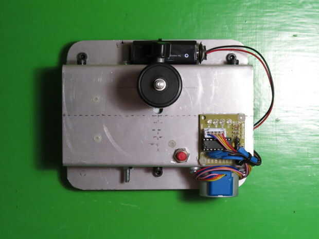 Que se ocupó vanamente con todos los componentes y había probado diferentes arreglos hasta que encontré algo que estaba contento con. Esto me permitió montar el siguiente, todo en el chasis de corredera: placa de Arduino Uno, batería de 9V, 5v Motor de pasos, 5v pasos escudo del Motor, interruptor de palanca entre la batería y la ONU. Las imágenes comunican mucho más que lo que explico aquí, pero puedes ver cómo usar la hoja de aluminio me permitió marcar, perforar y aprovechar los agujeros fácilmente. Con una cuidadosa planificación y montaje seco, pude crear una unidad de control limpio, ligero y eficaz. Sólo necesitaba para asegurarse de que sería montar con eficacia sobre el riel deslizante antes de pudiera evaluar si o no va a funcionar.