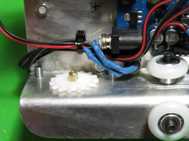 Me decidí a montar al montador de paso a paso en el chasis de corredera, y esto necesita un pequeño engranaje que se reuniría los dientes en el deslizador. Esto me permitiría utilizar un chasis en diferentes longitudes de tren.