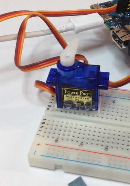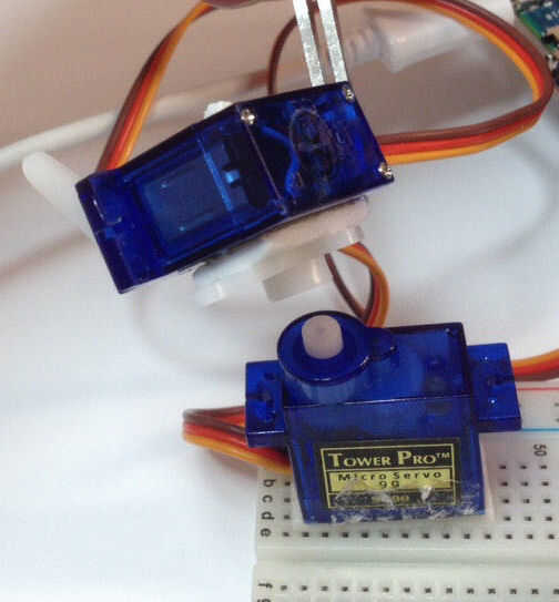 3. Lugar ahora el servo viene en la parte superior - esta vez desea colocar a su lado - etiqueta orientada hacia arriba - así sale el eje horizontal. Creo que "Molino de viento".