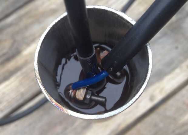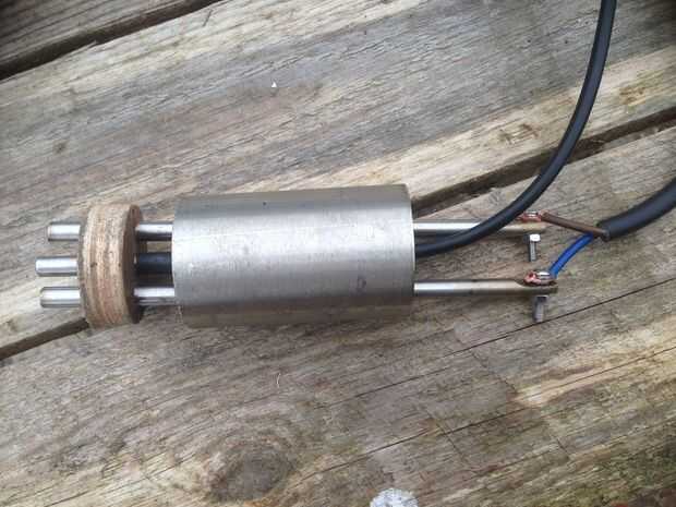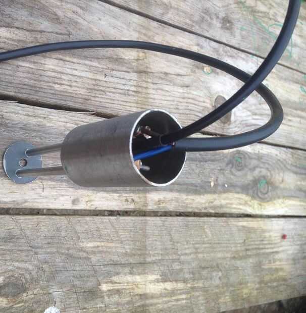 - Después de que la resina ha puesto duro, invierta el montaje y llenar el tubo con resina alrededor de las tres sondas.