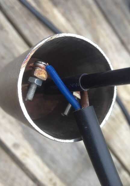 - Introduzca la madera contrachapada de 1/4 forma el cuerpo del tubo principal y vierta una pequeña cantidad de resina y endurecedor, asegurándose de que hay un montón de espacio entre todos los contactos eléctricos.