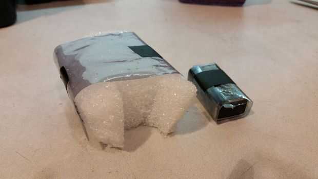 Cubrir la espuma y la batería con un protector estático. Corte el embalaje que llegó el Arduino. No estoy totalmente seguro es necesario, pero no duele.