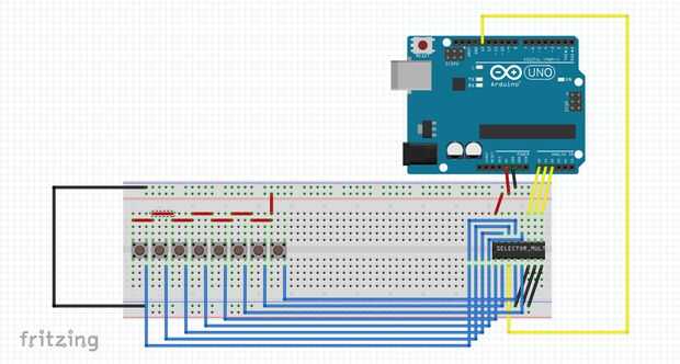 - Conectar la clavija leer del multiplexor en 13 y los puertos leemos a A0, A1, A2 y A3