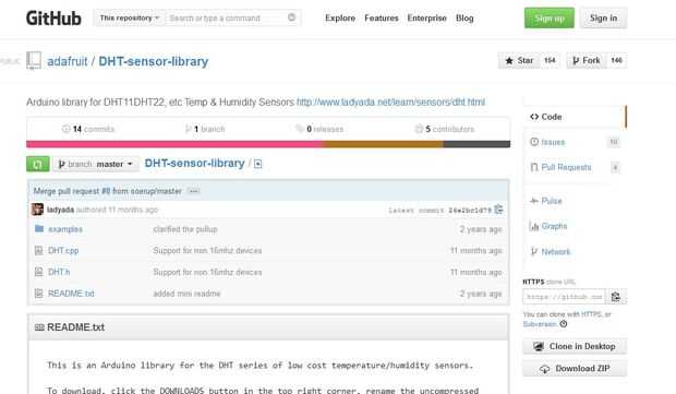- Descargar la biblioteca de Adafruit, el enlace te lleva a la página de "GitHub". Busque el botón de descarga de archivo zip.