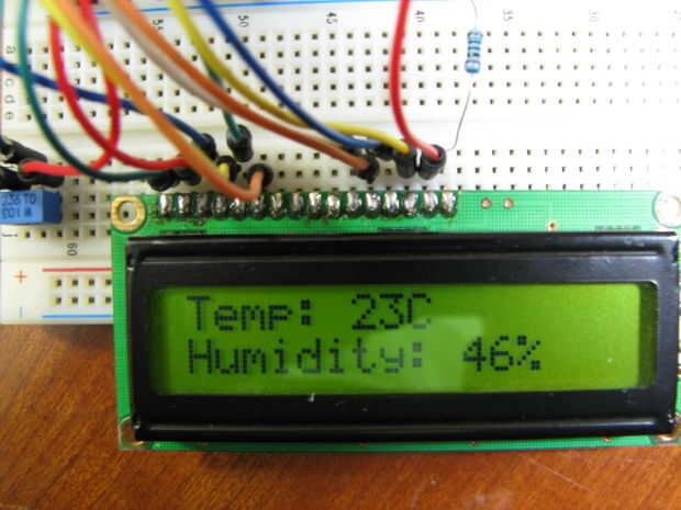 Subir a la Arduino - ahora debería ver la temperatura y la humedad en la pantalla LCD.