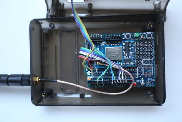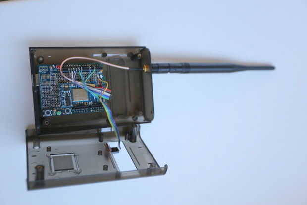 Si usted ha utilizado el caso de adafruit, romper las tapas, limpiar con un cuchillo y pop en su posición - que caliente pegado para mayor seguridad.