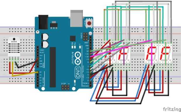 Para este circuito, tienes a múltiplex el 4 exhibiciones de segmento que significa que todos los pasadores led de las exhibiciones de segmento se conectarán en serie y luego conectados a pines digitales del arduino pero el terreno común respectivo pernos del segmento muestra conectar individualmente a los pines digitales de arduino.