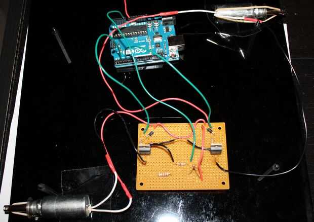 18. ahora tendrás a los solenoides a la Junta de la soldadura. Cable rojo al cable rojo y negro con negro. Originalmente yo iba para conectar el negro para el pequeño 2" secciones que había hecho antes pero por alguna razón se olvidaron de ellos y conectados usando mal hecho conexiones de puente en el otro lado de la TIP120s.