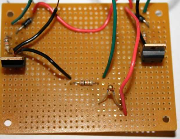 13. la pierna derecha el termistor de la soldadura. Conecte una sección de hilo rojo alrededor de 4" a la pierna derecha con la otra va al cable rojo conectado a la línea de alimentación del diodo.
