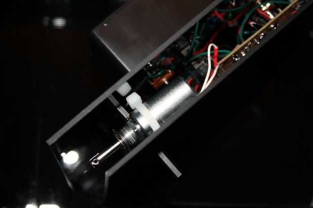 Inserte la llave en la parte superior de la tapa superior con cuidado hasta que encaje en su lugar y deslice el potenciómetro hasta que activan los solenoides. (Aunque la mina no después del montaje final, todo llevó fue poner en la clave y los solenoides retraídos automáticamente). Para desactivar, suavemente tire hacia arriba la tecla mientras mantiene presionada la tapa.
