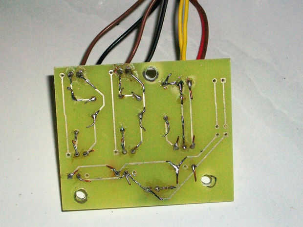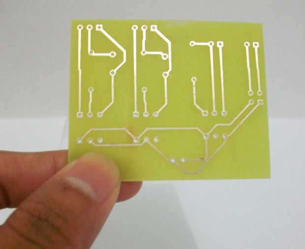 También se añade un diseño de PCB para la transferencia directa de toner. (ver imagen 6) El diseño es ligeramente diferente del prototipo mostrado en las imágenes de PCB impreso. Hay una ruta un poco diferente, porque me confunde con la tierra y positivo del circuito, por lo que yo debo rediseñar.