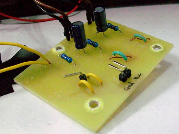 Conecte el cable negativo de electrolit condensador a tierra, y el positivo conectar con resistor de 10K (ver imagen 2)