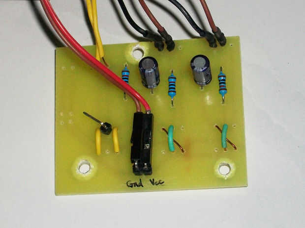 -Añadir 2 Masculino encabezado (curva) de positivo y negativo (ground) del circuito. (ver imagen 4)