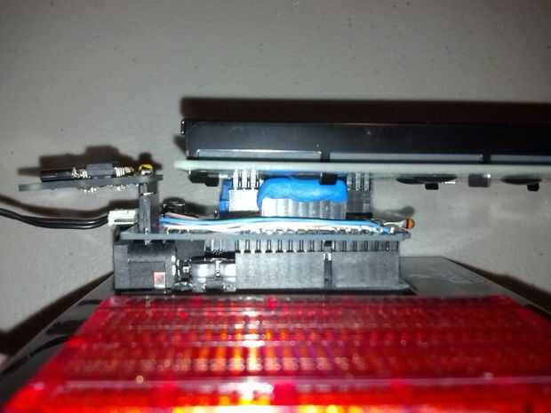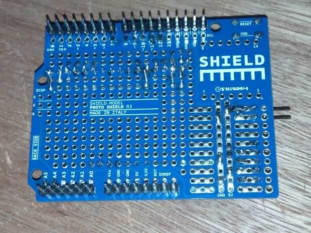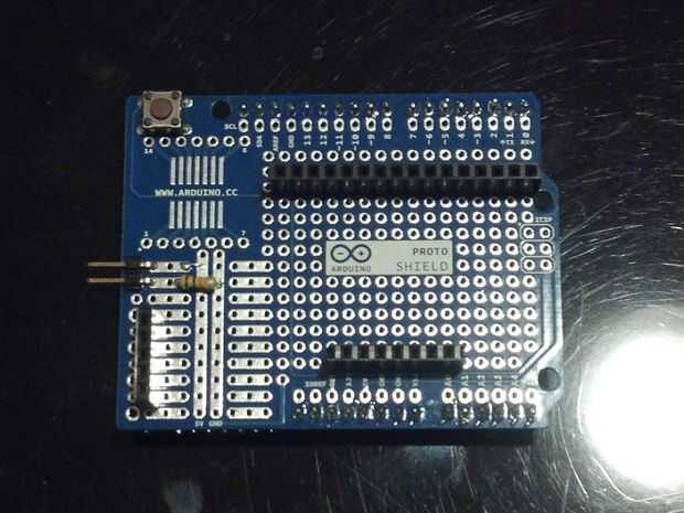 Hice otro juego de pines hembra con algunos pedazos de desecho que tenía puesta alrededor. Este sistema es solo para darle a la pantalla algo que apoyar y tomar tensión un poco fuera de la cabecera y las conexiones de perno. Soldar los pines hembra a la Junta, pegado algunos encabezados macho en ellos y me cortado el exceso del metal. Luego cubrí las tapas con algunos Sugru tenía puesta alrededor. El Sugru hace el tablero LCD subirlo un poco, por lo que es ahora un firme bastante monta y todo lo impide moverse.