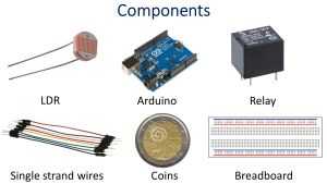 Y el circuito se puede construir con componentes simples como sensores de luz, relés y Arduino.