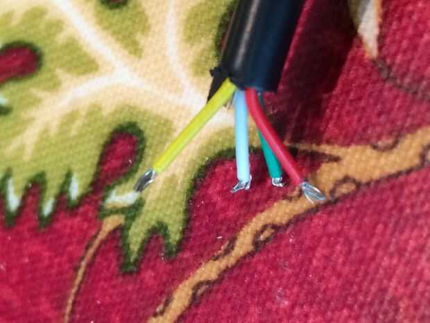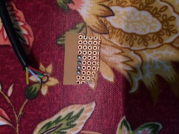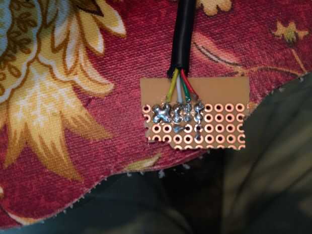 En primer lugar, romper el tablero perf como demostración. A continuación, tira de los cables y añadir soldadura a las puntas. Por último, soldar cuatro pernos en la placa de perf. Asegúrese de que no se toquen. Los 4 cables de colores en la placa de la soldadura.