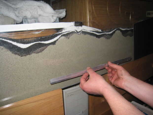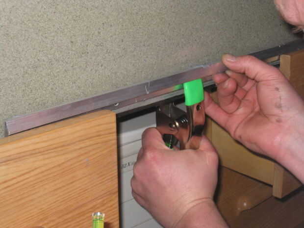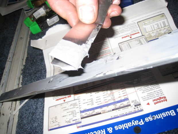 En la foto, he usado el epoxi de fuerza Industrial de 3 M que se hizo específicamente para vidrio y aluminio. Esta 1 parte blanco y 1 parte de negro epoxy rápidamente fue probado en algunos de la U en forma de aluminio de 1/2". De esto decidió darle un tiro y este sistema las ruedas en movimiento. Con niveles y abrazaderas y mis armarios (garage está en fase de "re-mod") pude conseguir un buen "mordisco" con las abrazaderas para permitir que el epoxi hacer su cosa. Tomé fotos de la escritura en progreso. Encontrar el centro, utilizar las abrazaderas de los niveles y mantenerla recta como sea posible.