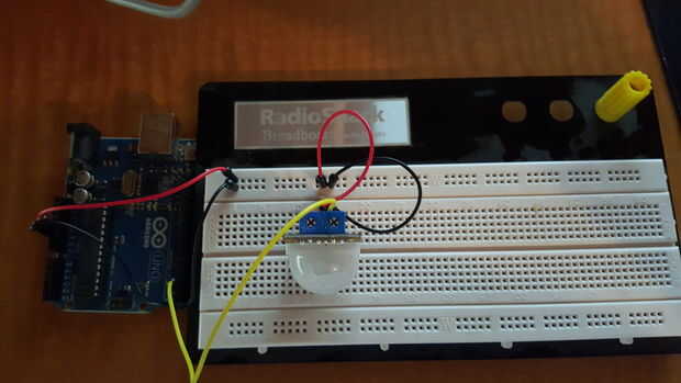 A continuación, conectar el sensor al tablero de pan y alimentación puente positivo y negativo que