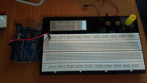 En primer lugar, conecte alimentación de Arduino Uno a la Junta de pan