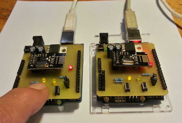 Para probar el nRF24, se necesitan dos módulos. Así terminé op haciendo dos escudos.