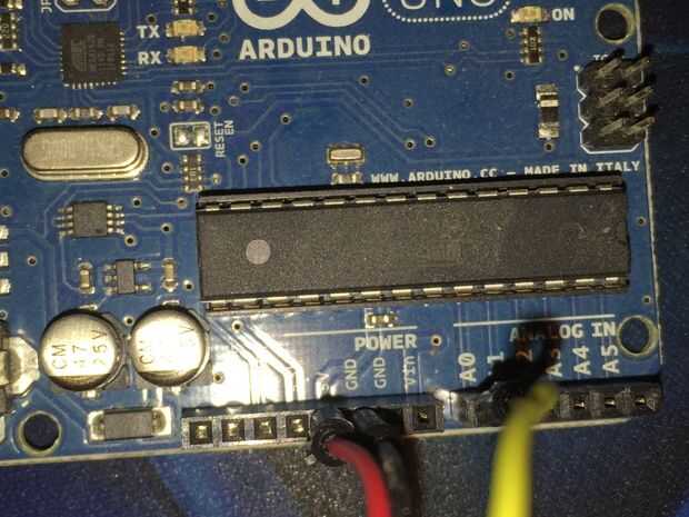 5) me enganchado un cable puente amarillo desde el lado de salida del Sensor (analógico) de mi sensor a la A0 (analógico 0) Pin en mi Arduino