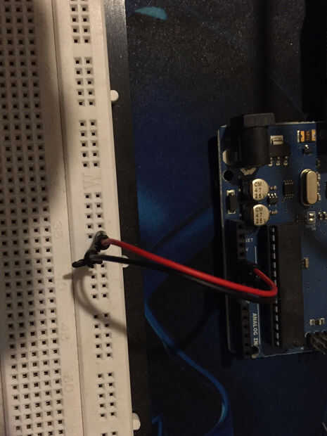 4) me enganchado otro puente negro cable del - lado de mi tablero de pan con el conector de tierra en mi Arduino