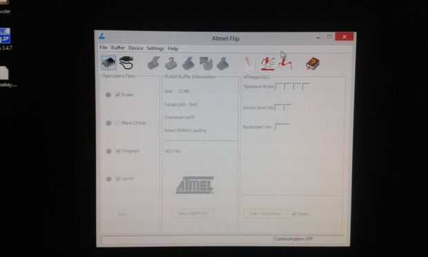 debe detectar el dispositivo y ahora haga clic en archivo y carga el archivo hexadecimal -> ubicar la carpeta hoodloader y seleccione hoodloaderX_X.hex ahora haga clic en 'ejecutar' (no ' start application' parece prometedor pero no es la opción) se debe quemar el flash en el chip para comprobar Desconecte el arduino y conectar en el administrador de dispositivos debería ver hoodloader beta o algo similar actualizar el controlador para que seleccione examinar mi PC para el software del dispositivo y navegar en la carpeta hoodloader debe incitar una warning(or not) seguridad sólo aceptar e instalar