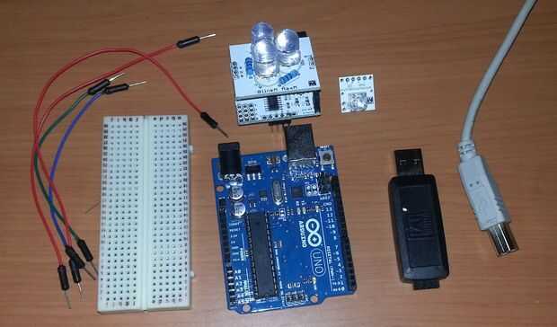 aprende a hacer tu propia luz de estado de ánimo de un Arduino!!!!!!Paso 1: Reunir los materialesVas a querer reunir estos materiales, si usted quiere construir la luz de estado de ánimo:1 Uno de x Arduino1 LED x RGB3 x 330 Omh resistencias1 x Breadb