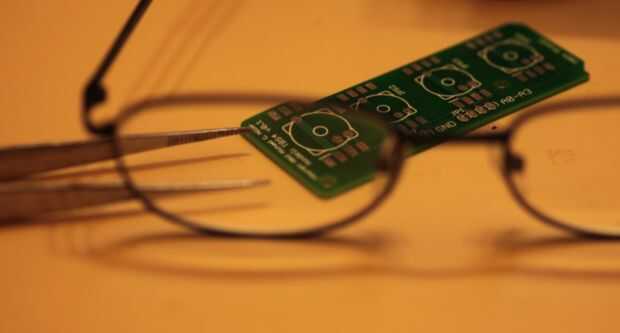 Me pareció tener algún tipo de mejora de la visión un requisito. Mientras mi visión sigue siendo muy buena, no podía imaginar tales piezas pequeñas sin un aumento de la soldadura. He encontrado que usar gafas de lectura con un aumento decente trabaja muy bien. Sólo perdí dos condensadores de 12 en que tuve que soldar. Estaban cerca del tamaño de un grano de arena. La próxima vez voy a usar piezas más grandes de SM.