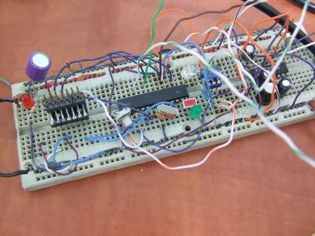 Lo que estoy haciendo es un probador de la batería con luces Led que también funciona en un Arduino.What que muestra cuánta batería queda en él por el encendido del LED. Para el cableado usé un tablero que me ayudó mucho. Por favor comentar sobre mi