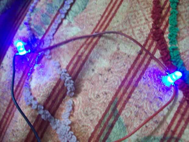 3) Conecte el positivo de un led con el cable positivo y otro led de negativo al cable negativo del cable.