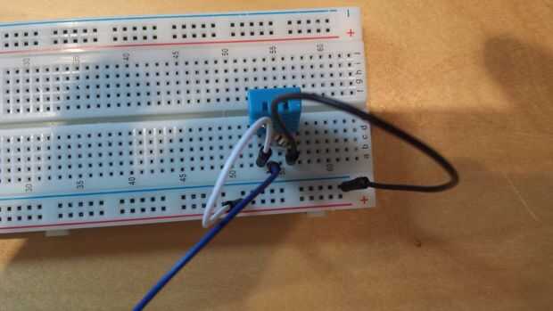 De resistencia wordt tussen de datos at de 5v pin gezet. (Foto de Zie)