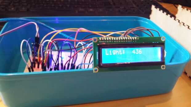 void Light() {/ / Pon tu código principal, para ejecutar varias veces: lightSensivity = analogRead(lightPin); Serial.println(lightSensivity); if(lightSensivity < lightBarier) {digitalWrite (ledPin, HIGH);} Else {digitalWrite (ledPin, LOW);} //print a LCD lcd.clear(); lcd.setCursor(0,0); LCD.Print ("la luz:"); lcd.setCursor(8,0); LCD.Print(lightSensivity); }