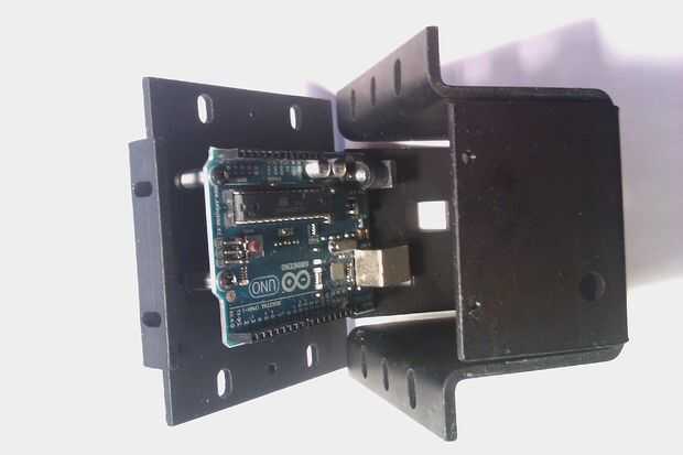 Después de instalación el Arduino UNO y 7 escudo de luz, el caso puede cerrarse fácilmente. Se alinean las ranuras de las bridas, las ranuras en el borde se alineen con los agujeros en la cubierta y el puerto USB y conector de barril debe quedar fuera de los agujeros rectangulares.
