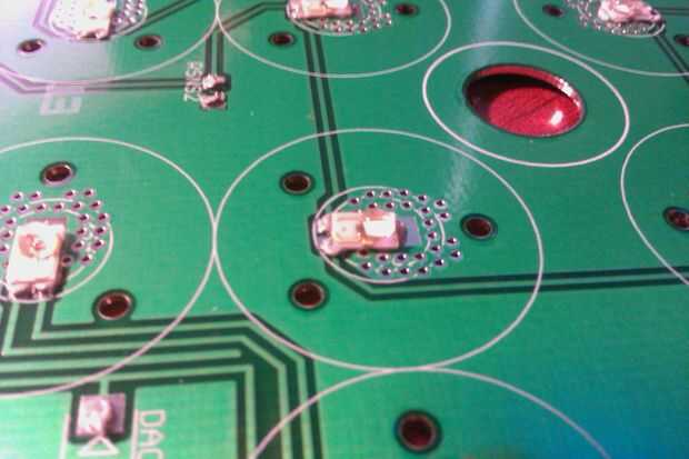 El último paso en el montaje de la tarjeta es para colocar la óptica--en este caso OPC1 estilo óptica de Dialight. ¡ Son grandes! Hay tres fichas para guiar en la posición correcta (que es buena siempre y cuando el LED se centra correctamente de los de soldadura por reflujo), y unida están respaldados por lo que permanecen en su lugar. También se ven muy elegantes, en mi opinión. Un Consejo muy atractivo!