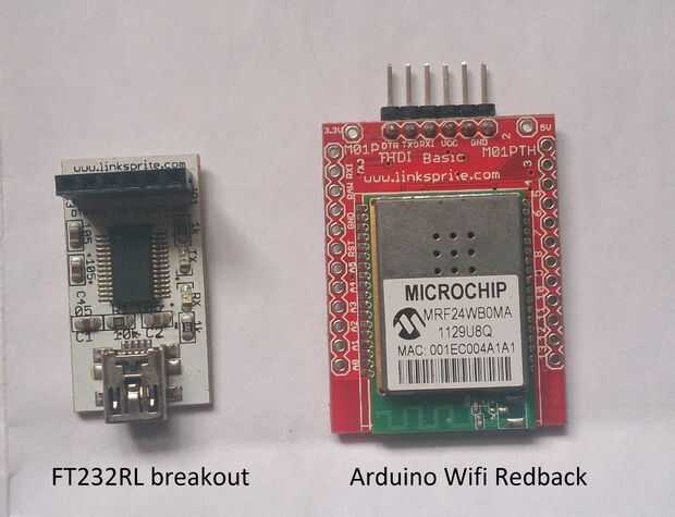 El redback no tiene ningún puerto USB. Por lo tanto, usted tiene que utilizar una FT232RL breakout Junta para programarlo. Al conectarse el arranque USB de redback es importante coincidir con los pernos como se muestra a continuación