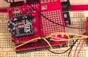 6. Ejecute un puente desde el pin negativo en el escudo de xbee a la placa y un jumper de la placa a la batería de cinco voltios.