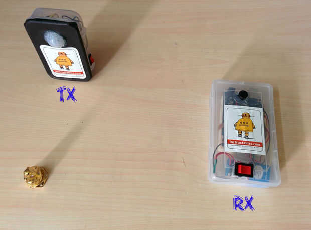 Vendría bien IR, pero que tiene un rango limitado y puede trabajar solamente dentro de una línea de vista del receptor. Pero con el módulo de RF barato podemos comunicarnos dentro de la gama de unos 100 metros.