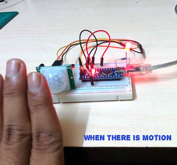 Cuando hay movimiento frente al sensor, el LED se iluminará. También puede ver el mensaje abriendo el monitor serie.