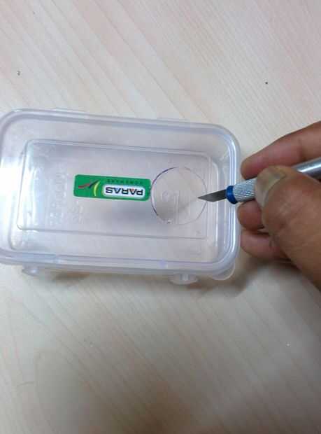 Hacer un agujero rectangular para insertar el interruptor de encendido y encolarla.