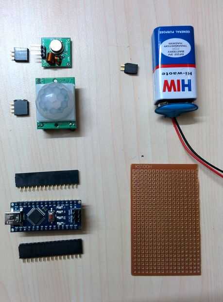 Coloque la placa de arduino nano sobre el encabezado y conecte los cables de puente a PIR sensor y transmisor de RF.