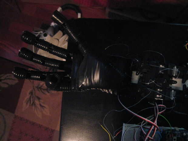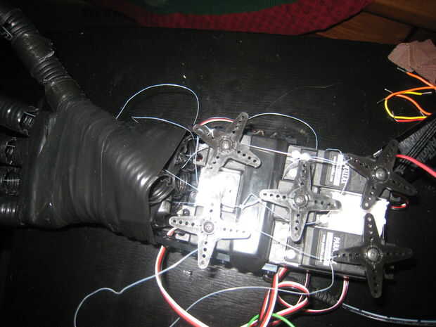 7. he añadido todas 5 servos a la mano con cinta y legos