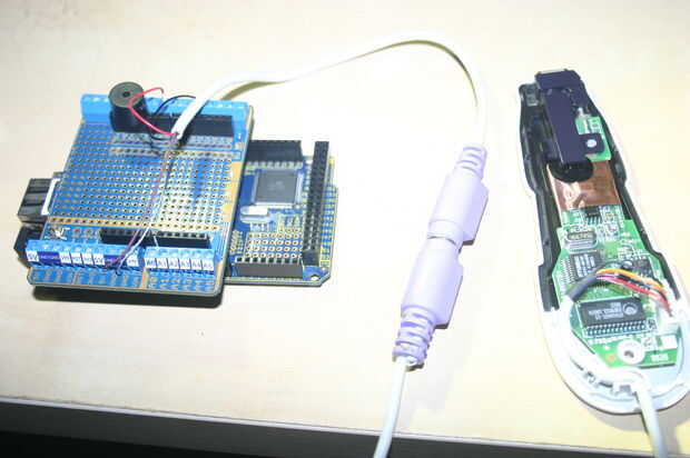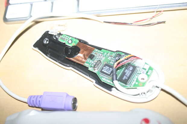 Conectores hembra PS2 son difíciles de encontrar en estos días, así que corte el conector hembra del cuecat y utiliza para romper los cables...