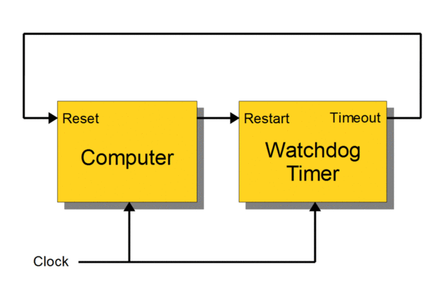 En equipos pequeños, puede dar su dispositivo la posibilidad de recuperarse de fallas mediante el uso de lo que se llama un temporizador perro guardián (WDT). Un WDT es un temporizador electrónico que se utiliza para detectar y recuperarse de fallos de computadora. Si el equipo no reinicie el temporizador (también llamado "acariciando el perro") en el WDT antes de que caduque el temporizador WDT, la señal WDT se utiliza para iniciar o acciones correctivas o simplemente al reiniciar el equipo.