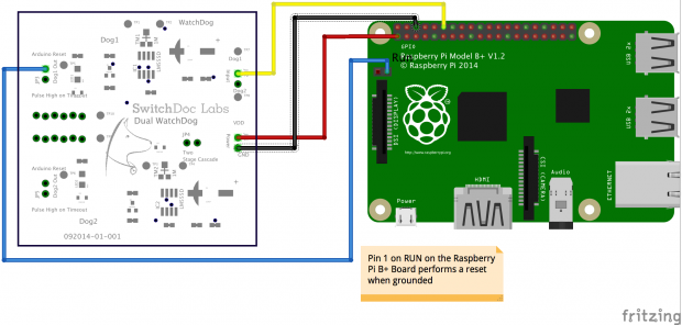 Resumen: En el paso 5 de este Instructable nos fijamos en la configuración de un temporizador de vigilancia externa con Arduino y también con el Raspberry Pi. Utilizamos el Temporizador de vigilancia Dual SwitchDoc Labs, que es una buena opción para un temporizador WatchDog externo en muchos sistemas. Por último, nos fijamos en un problema del mundo real de RFI (interferencia de radiofrecuencia), que realmente el cuadro de Proyecto Curacao .
