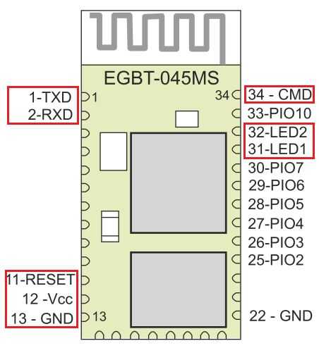 - pin 34 : pin de modo comando, utilizado para activar/desactivar modo de AT(command).