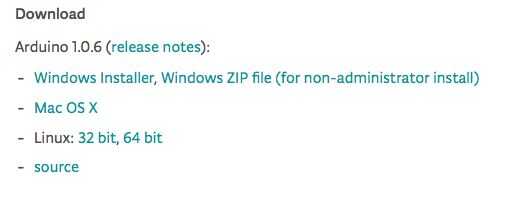 El sistema de desarrollo Arduino comienza con la instalación del software en su computadora. Para ayudarle con la instalación, hay varios recursos disponibles. El mejor lugar es http://arduino.cc/en/main/software, donde podría descargar el software siguiendo las sencillas instrucciones en esta página de instalación. Por ejemplo, he incluido un video de demostración de descarga de la versión para Mac y la instalación. Los usuarios de Windows sigan un procedimiento similar.