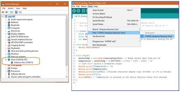4) en el IDE de Arduino, vaya a herramientas = > Puerto y conectar con el puerto donde está conectado Arduino